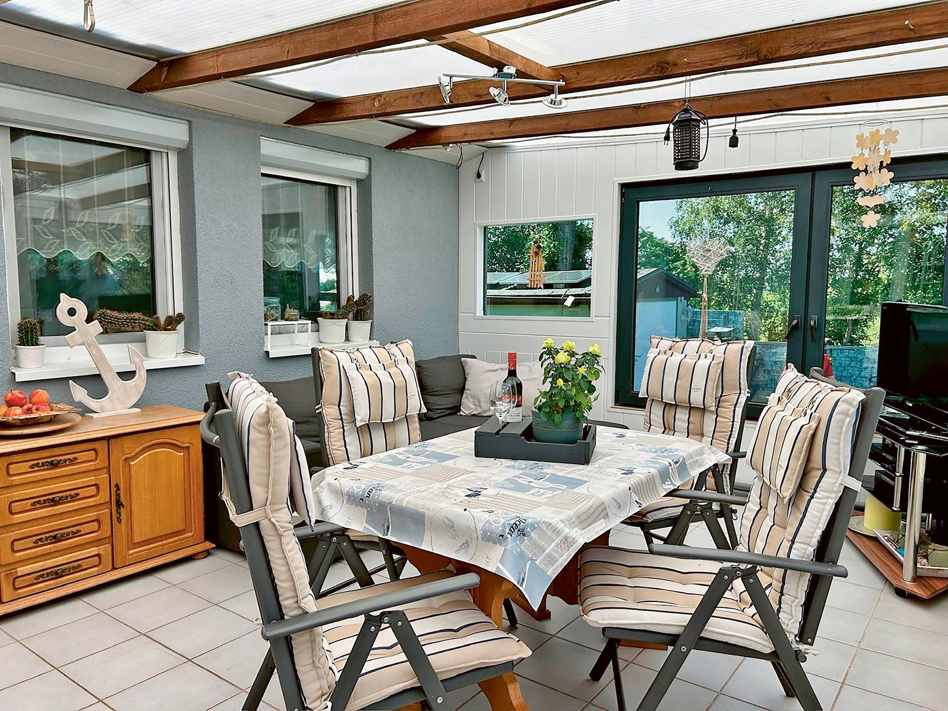 Wintergarten: Wohn- und Essbereich (beheizbar), TV (Netflix, Prime, Disney +, Waipu TV)